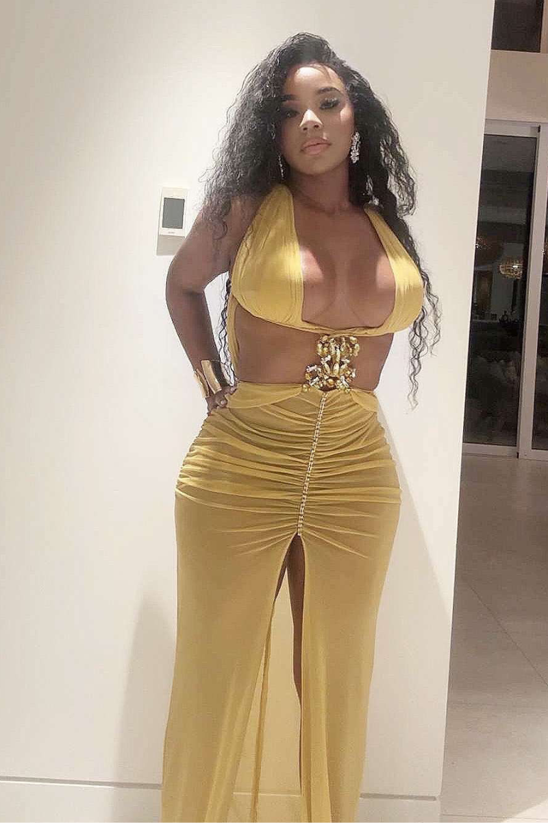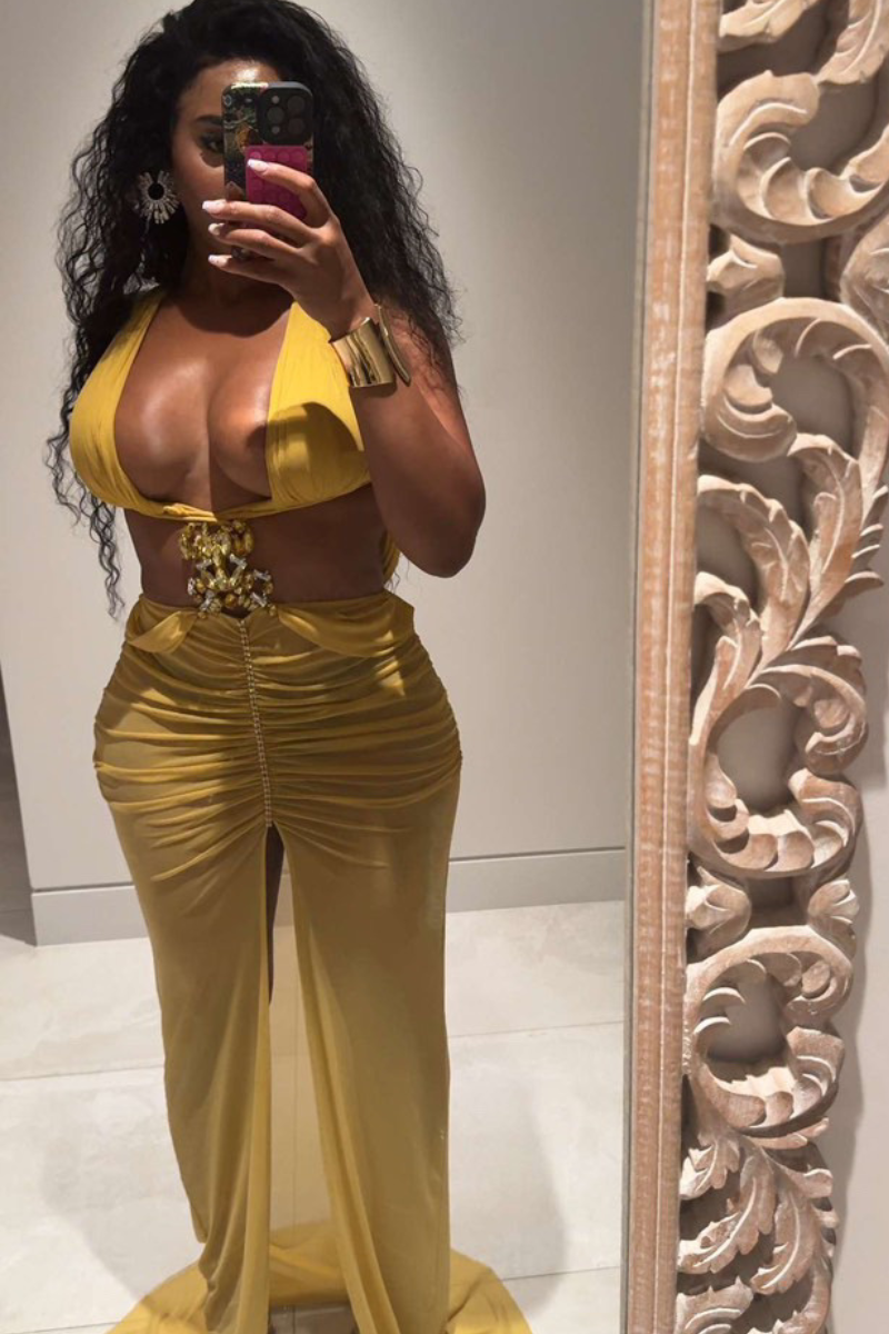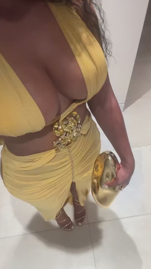 Feminine, flirty, and effortlessly elegant—the Doja Ruched Dress is your go-to for a stunning entrance. Turn up the heat in this figure-flattering gown designed for women who love to make a statement. Features a ruched bodycon fit, a daring open-back design, and crystal-embellished accents for the perfect amount of sparkle. Made with good quality stretch fabric, it hugs your curves while keeping you comfortable all night long.