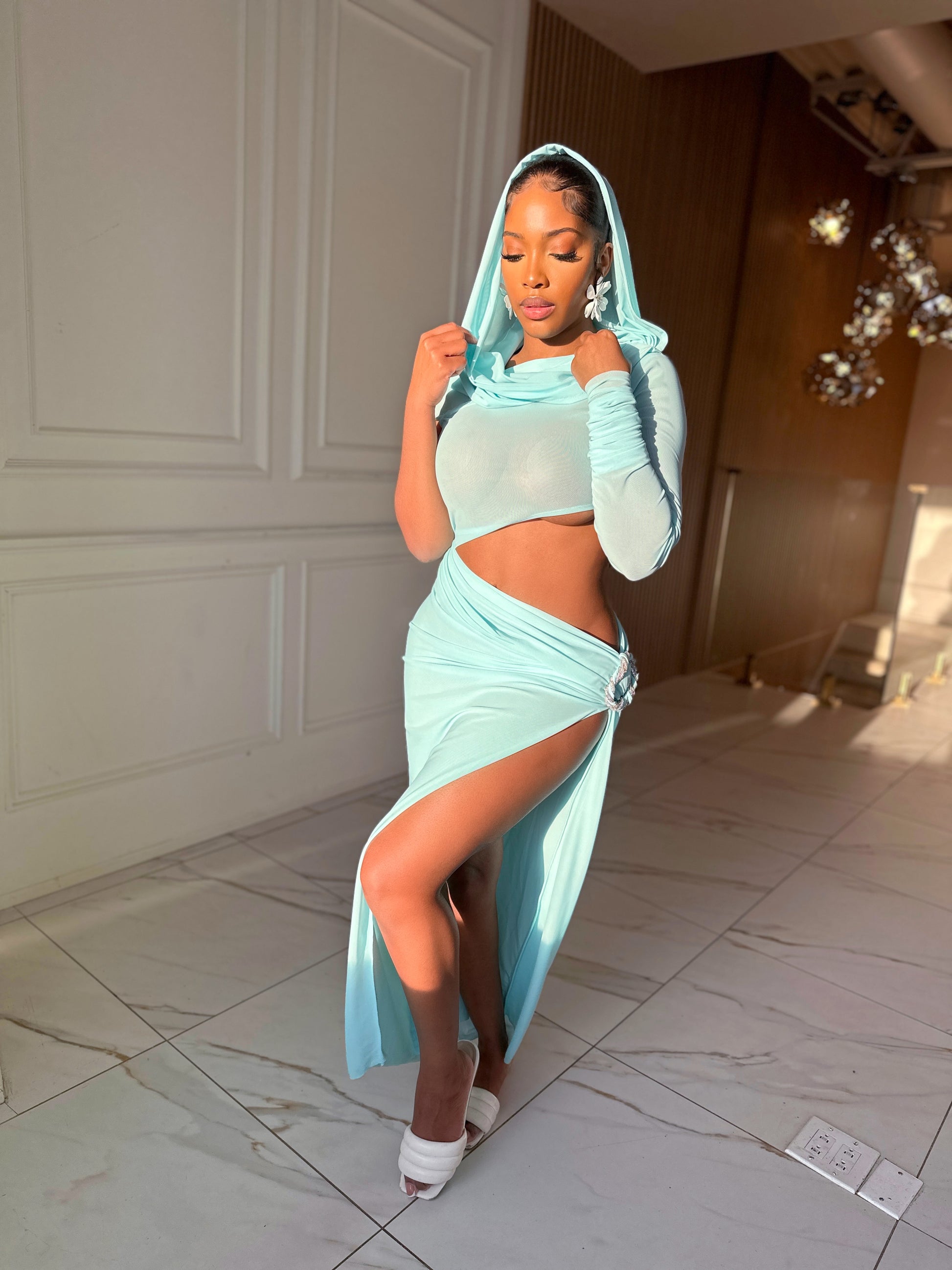 Designed for the woman who loves versatility, this dress transforms to match your mood. Wear it off one shoulder for effortless allure, drape it as a chic cowl neck, or pull up the hood for a touch of mystery and modest luxury.Whether you're strolling through Dubai, heading to a romantic dinner, or stepping out on vacation, this piece moves with you.