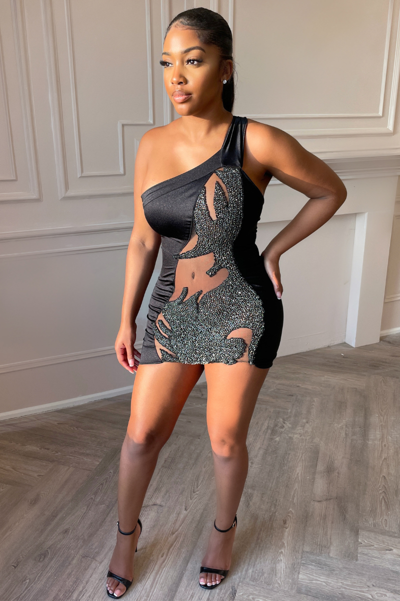Starlight Rhinestone Dress – Sleek, Snatched & Sparkling